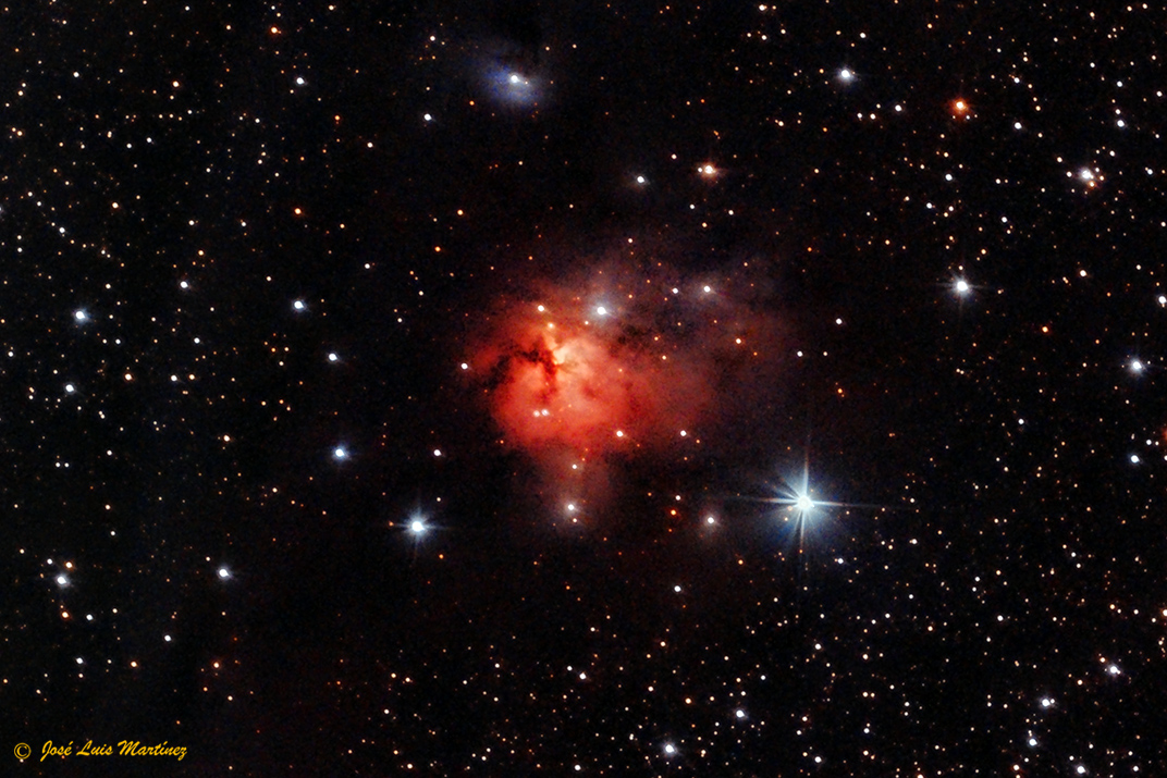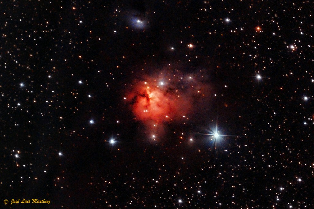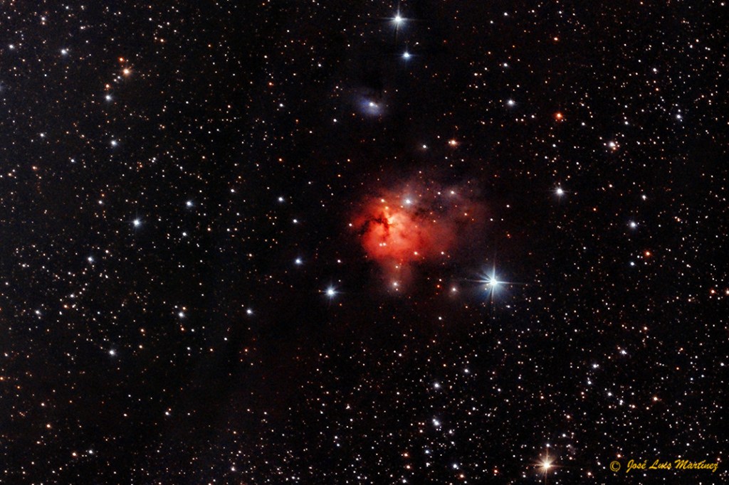 Situada en el cielo en la constelación de Perseo, casi en el límite con la de Auriga, y a unos 2100 años luz de distancia de nosotros, se encuentra una nebulosa difusa, una región HII, en la que se da una intensa formación de estrellas.