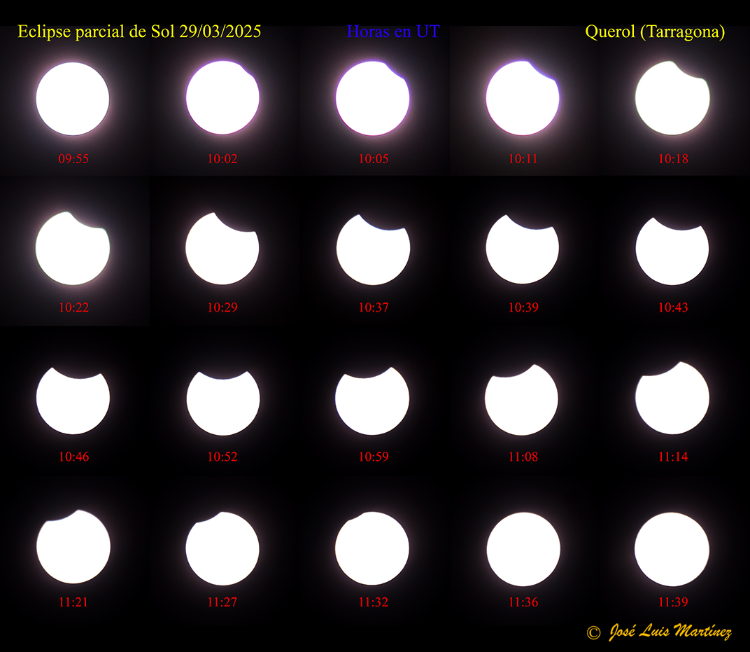 El sábado 29 de marzo de 2025 se produjo un eclipse parcial de Sol que, desde Querol (Tarragona), nuestra estrella quedó oculta en un 14% en su máximo.