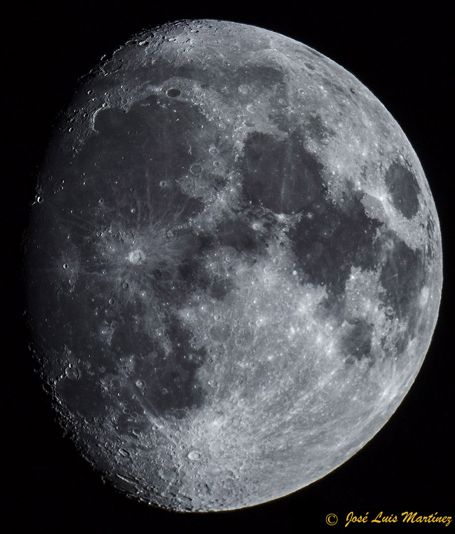 A pesar de estar espléndida en esta fase, se observa que no hay detalles del relieve lunar. Podemos observar algunos cráteres, como Plato, Copernicus, Tycho Kepler o Aristarchus, pero se ven planos, sin profundidad ni altura de sus paredes.