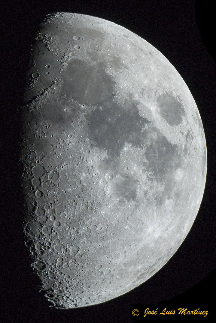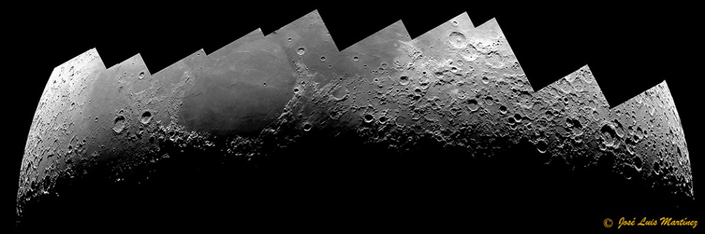 La imagen de la izquierda es un mosaico de cinco fotografías realizadas con un telescopio reflector Celestron 150/750 y una cámara Philips SPC900, desde Barcelona el día 24 de octubre de 2009. En ella podemos apreciar como el relieve cerca del terminador está mucho más marcado y, a medida que nos alejamos de él, cada vez se aprecia menos, es más plano.