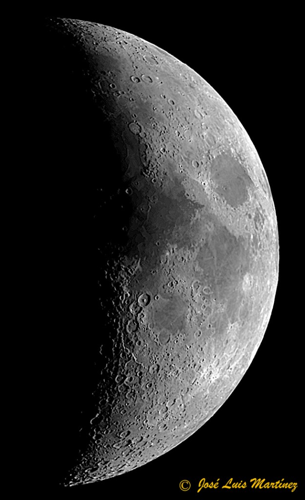 Para acabar, una imagen del terminador de la luna creciente de 6 días. Es un mosaico de unas fotografías que realicé desde Cornellà de Llobregat el día 9 de mayo de 2011, con un telescopio Schmidt Cassegrain Celestron 203/2032 y una cámara Philips SPC900.