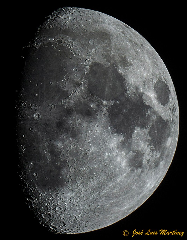 Ese día, la Luna estaba gibosa creciente de 8 días, tres días más que la anterior imagen en que la Luna estaba creciente de 5 días.