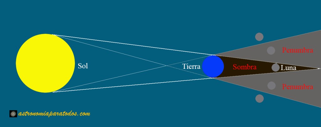 Si la Luna entera entra en el cono de sombra, se producirá un eclipse total; si solamente entra una parte, se producirá un eclipse parcial.