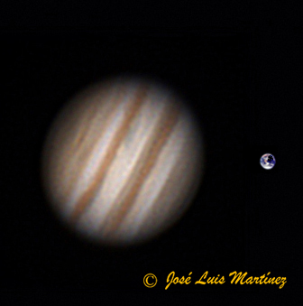 En la fotografía de la derecha, hecha desde Cornellà de Llobregat el 23 de diciembre de 2013 con un telescopio Schmidt Cassegrain Celestron 203/2032, una barlow 2X y una cámara DBK 21AU04, hay una Tierra para ver la comparativa de tamaños entre los dos planetas.