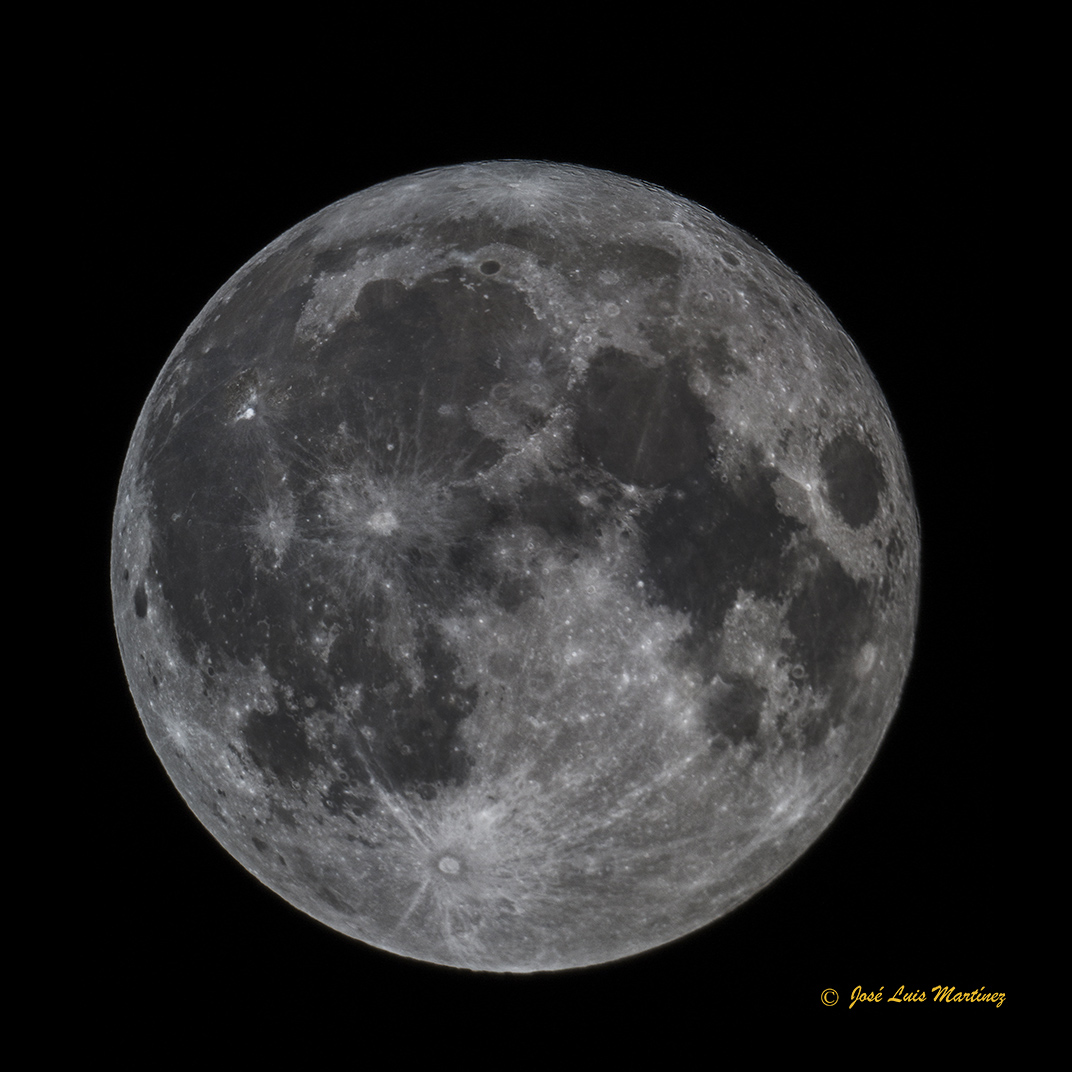 La fotografía de la izquierda, hecha desde Cornellà de Llobregat el 31 de octubre de 2020 con un telescopio Schmidt Cassegrain Celestron 203/2032 y una cámara Canon EOS 70D, nos muestra la Luna en su máximo esplendor, en Luna llena (ver Luna de 15 días, Luna llena).