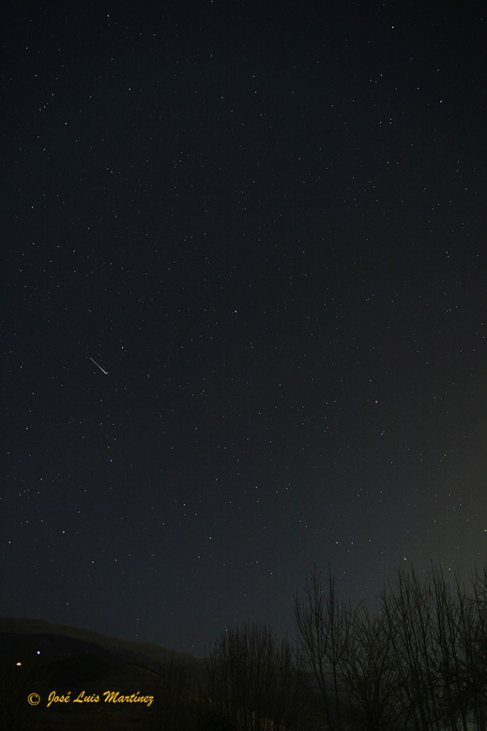 En la fotografía de la izquierda, realizada desde Sant Joan de les Abadesses el día 2 de marzo de 2012 con una cámara Canon EOS 30D y un objetivo Sigma 17-70, se puede observar una estrella fugaz o meteoro.