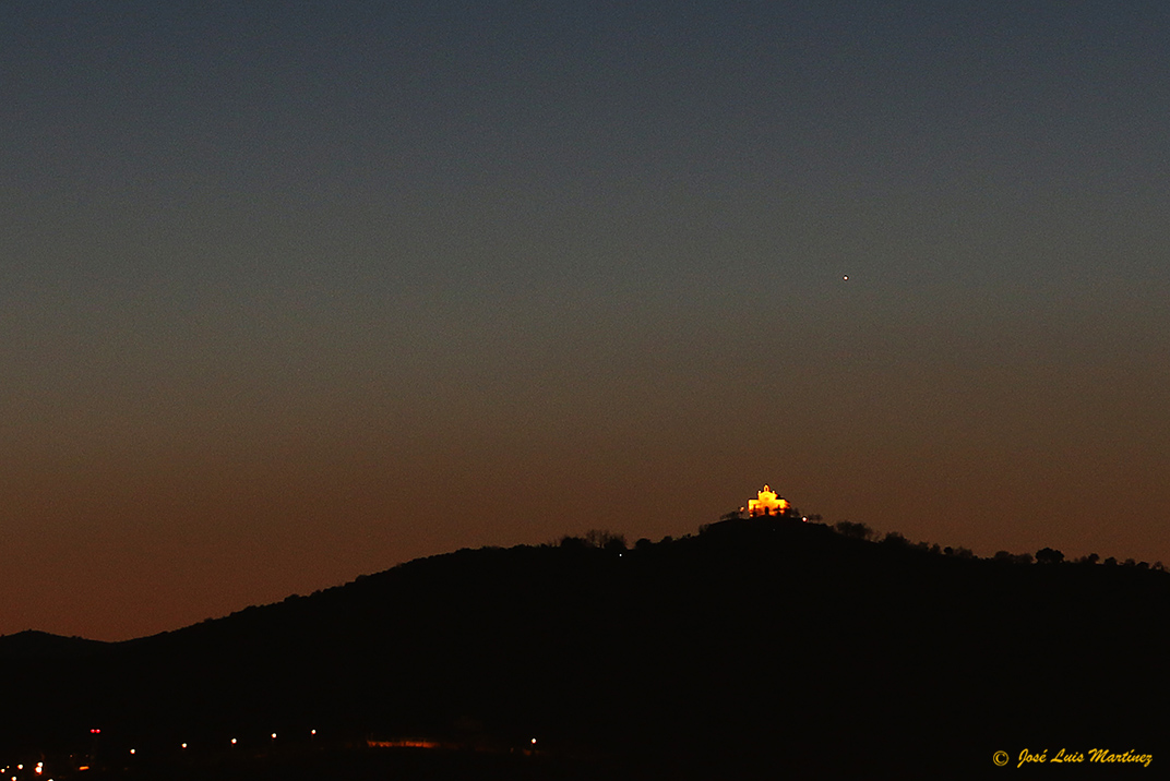 En la imagen siguiente, realizada desde Cornellà de Llobregat el día 22 de enero de 2015, con una cámara Canon EOS 70D y un objetivo Canon 15-85, se puede observar a Mercurio en el atardecer, por encima de la ermita de Sant Ramon de Sant Boi de Llobregat.
