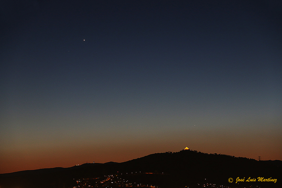 En la primera fotografía, Venus es el astro brillante que se ve arriba y un poco a la izquierda de la fotografía y Mercurio se ve un poco por encima y un poco a la derecha de la iglesia de la montaña (es la iglesia de Sant Ramon de Sant Boi). En la segunda, Venus es el astro brillante un poco a la izquierda y un poco por encima de la Luna y Marte está un poco por encima y un poco a la derecha de Venus. En la tercera fotografía la Luna, Júpiter y Venus forman un triángulo; Venus es el punto de la derecha y Júpiter el de la izquierda.
